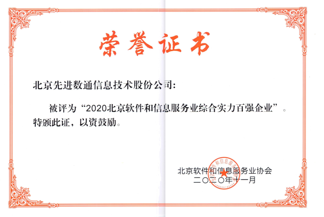 PA真人视讯成功入选“2020北京软件和信息服务业信息综合实力百强企业,并获评2020北京软件企业核心竞争力规模型企业。